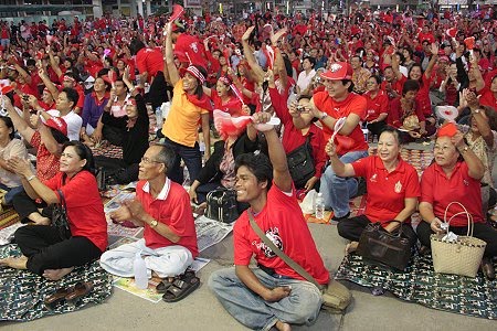 The immediate crisis had been escalating since mid-March 2010, when tens of thousands of members of the increasingly heterogeneous UDD began their takeover of the streets of Bangkok. The red-bedecked activists from all over Thailand carried their tents, sleeping-mats and food supplies into the area around the high-rent shopping-district of the Rajprasong intersection. The red-shirts' political representatives held intermittent talks with the government of Thailand's prime minister Abhisit Vejjajiva; but these broke down in the first days of April, and the protestors then vowed to stay in place until the parliament was dissolved and new elections announced.